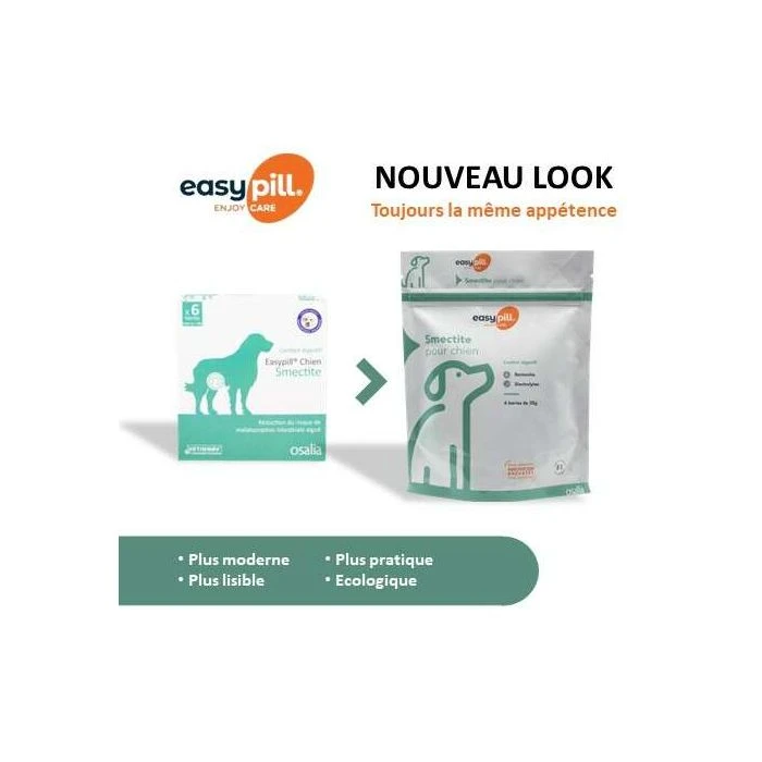 Easypill Smectite chien se prĂ©sente sous forme de barres prĂ©dĂ©coupĂ©es en 7 portions de 4 g. L’excellente appĂ©tence du produit permet gĂ©nĂ©ralement une prise spontanĂ©e par l’animal.